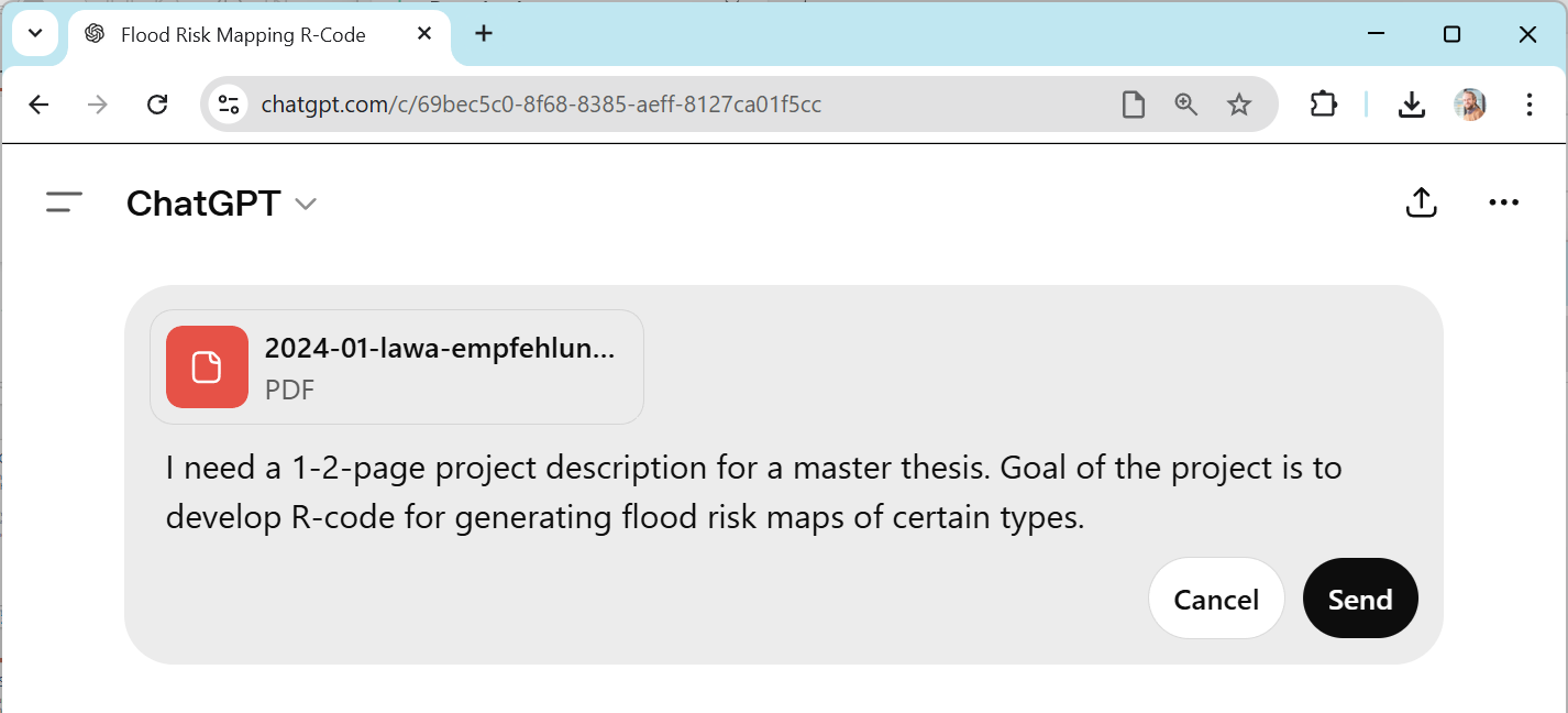 In this exercise we take the Recommendations for Flood Risk Maps (in German) (licensed CC-BY 4.0 by LAWA Ausschuss Hochwasserschutz und Hydrologie and contributors) to develop a project proposal for a master thesis. Along the path, we will investigate which Python/R libraries might be useful for this kind of data visualization.